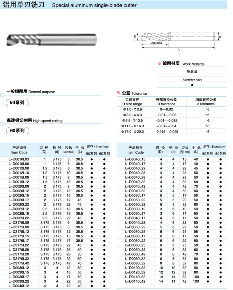 鋁用單刃銑刀